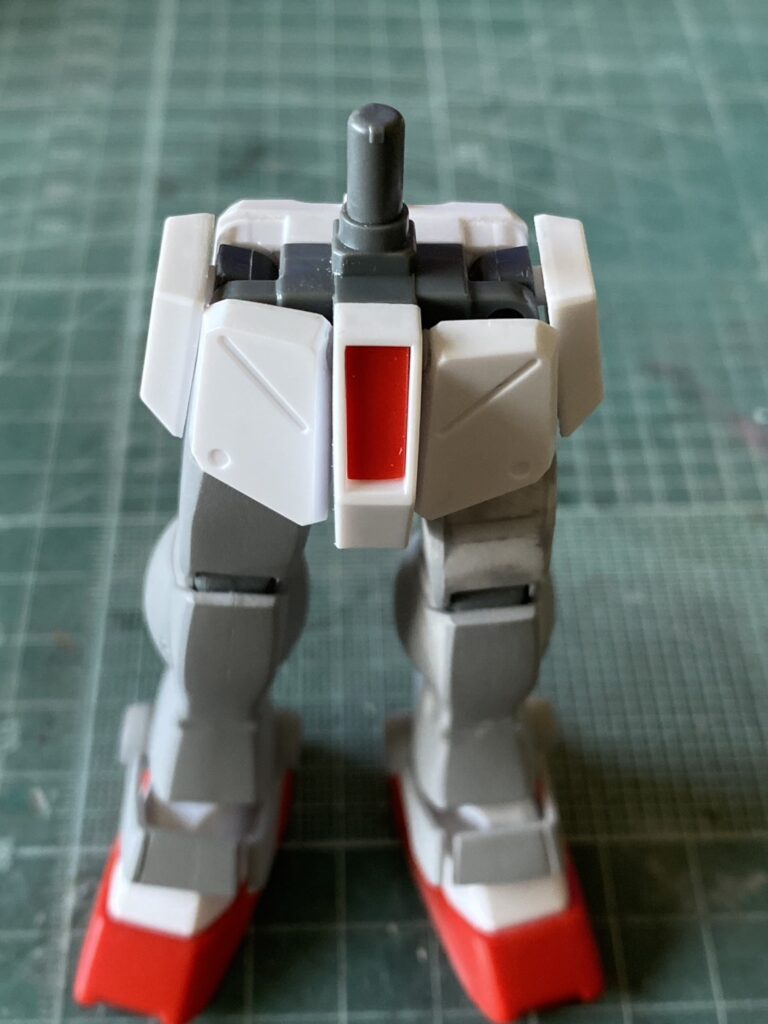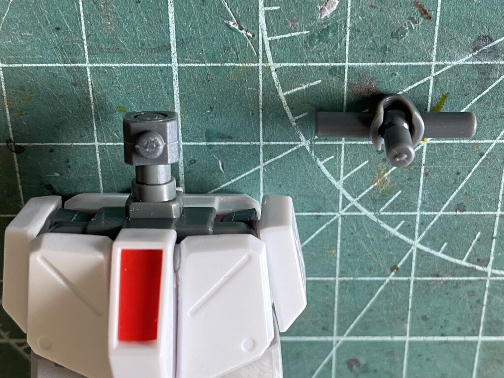 1回目にお話しましたが、ジムコマの胴体が詰まった様な違和感を少しでも解消するために全長を伸ばす改修と、胸部と腰部を繋ぐ1軸をボールジョイントに変更して、ポージングの幅も広げる改修を行いました